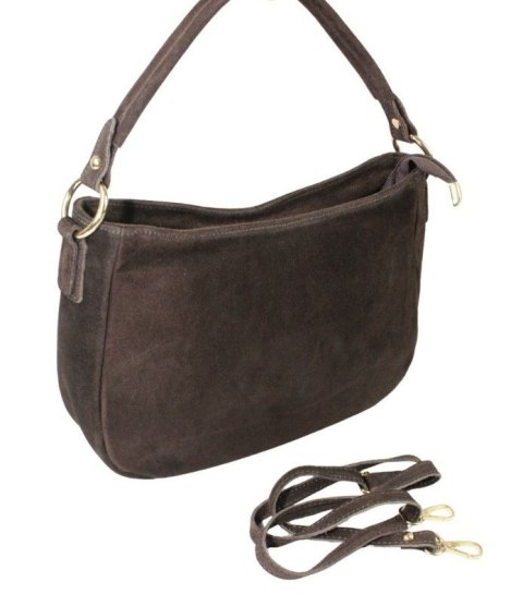 Torebka Skórzana LUKA 24-085 Skóra Naturalna Zamszowa Czekoladowa 30 x 20 x 9 [cm]
