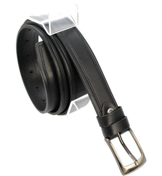 Pasek Męski Skórzany PAS-MAX (PL) "IMITACJA SZYCIA" Skóra Licowa EXTRA 30 mm CZARNY
