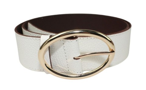 Pasek Skórzany Damski Arucce (PL) Skóra Naturalna EXTRA SZEROKI Gładki 50 mm KREMOWY Złota Klamra