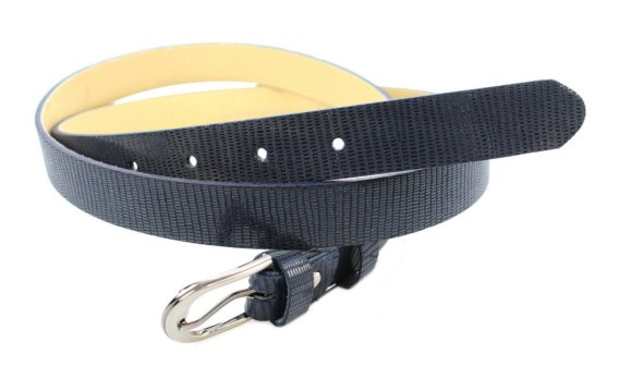 Pasek Skórzany PAS-MAX (PL) Damski "POŁYSKUJĄCA DROBNA ŁUSKA" Skóra Licowa 25 mm GRANATOWY k604