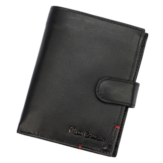 Portfel Męski PIERRE CARDIN Skóra Licowa RFID Duży Pionowy Z Zapięciem MATOWY Z OZDOBNYM ELEMENTEM 331A 13 x 10 x 3 [cm]