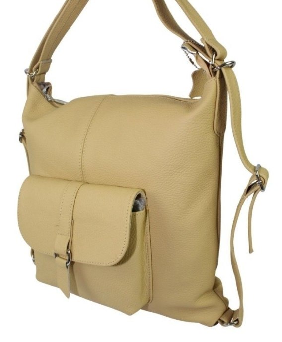 Praktyczny Plecak Skórzany Torebka 2 w 1 MAGRE (PL) AMELIA Skóra Naturalna Licowa BISZKOPTOWY
