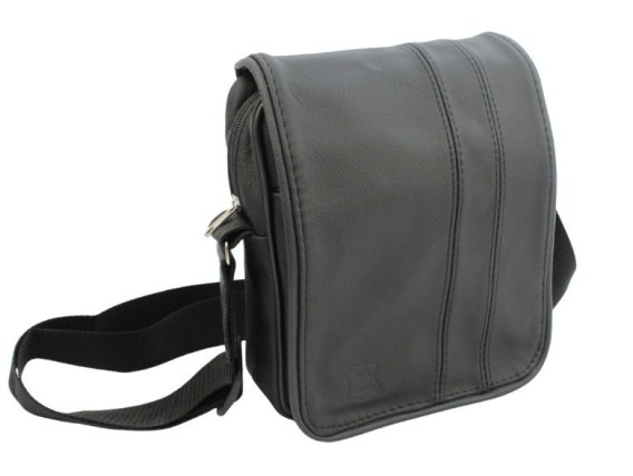 Skórzana Torba Na Ramię Pionowa GRETOS (PL) CZARNA Z PRZESZYCIAMI Listonoszka Z Klapką 25 x 18 x 8 [cm]
