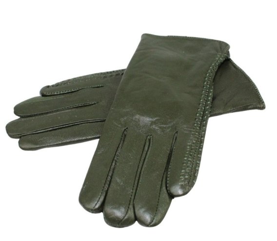 Skórzane Ocieplane Rękawiczki Damskie PolskaGalanteria.pl Ze Skóry Naturalnej CIEMNE OLIWKOWE Rozmiar 8