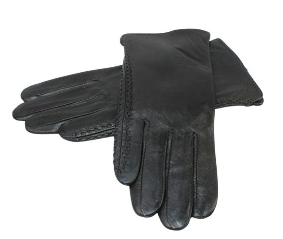 Skórzane Ocieplane Rękawiczki Damskie PolskaGalanteria.pl Ze Skóry Naturalnej Z Wzorkiem Podwójna Nitka CZARNE Rozmiar 7