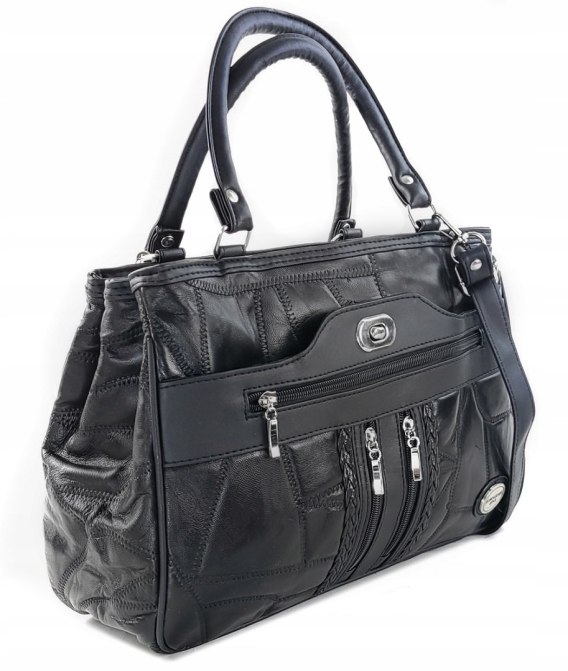 • Na samym przodzie torebki znajdują się trzy schowki zapinane na solidny suwak o wymiarach 20 x 13 [cm] oraz 2 mniejsze o wymiarach 11 x 13 [cm]