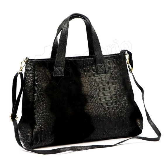 Torebka Skórzana LUKA CROCO Skóra Naturalna CZARNA 26-034 38 x 26 x 12 [cm]