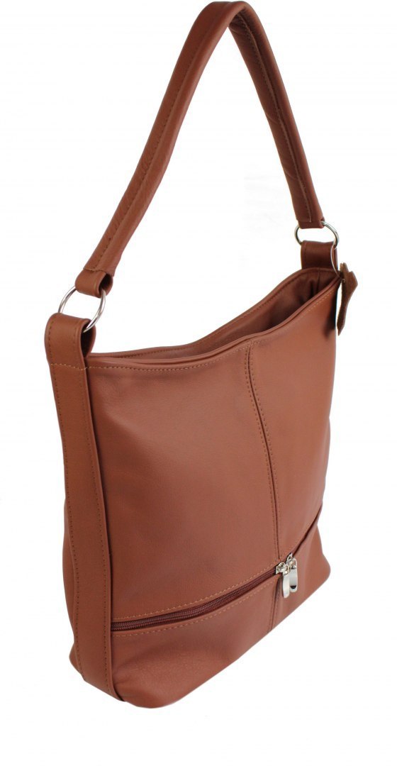 Prezentowana torebka skórzana Aśka jest znakomitą propozycją dla kobiet poszukujących praktycznych i ponadczasowych dodatków. Model ten ma uniwersalny kolor jasnego brązu, który należy do równie klasycznych, co czerń czy ciemny brąz. Torebka została w całości wykonana z naturalnej skóry, z dbałością o detale. Materiał jest niezwykle miękki i delikatny w dotyku, a jego gładka powierzchnia jest łatwa w czyszczeniu. Model można wykorzystać jako uzupełnienie swobodnej i eleganckiej stylizacji, gdyż znakomicie prezentuje się w towarzystwie koktajlowych sukienek, a także codziennych zestawów z jeansami czy letnimi spódnicami. Torebkę można zabrać ze sobą wszędzie - do pracy, do szkoły, na imprezę, zakupy czy spotkanie ze znajomymi.