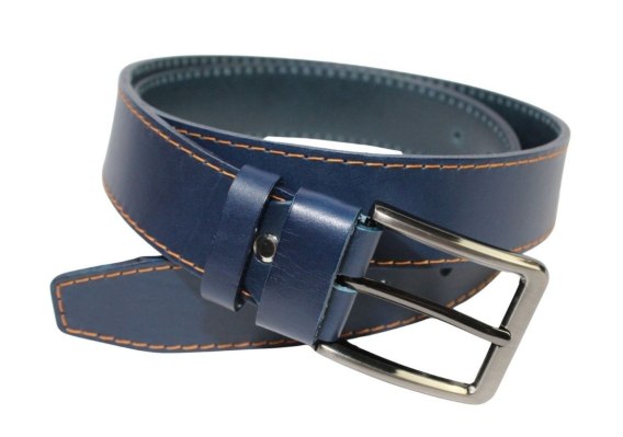 Pasek Męski Skórzany PAS-MAX (PL) Skóra Licowa EXTRA 40 mm Niebieski Z Pomarańczową Nitką