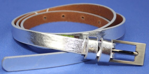Pasek Skórzany PAS-MAX (PL) Damski Skóra Licowa 15 mm SREBRNY Wąski