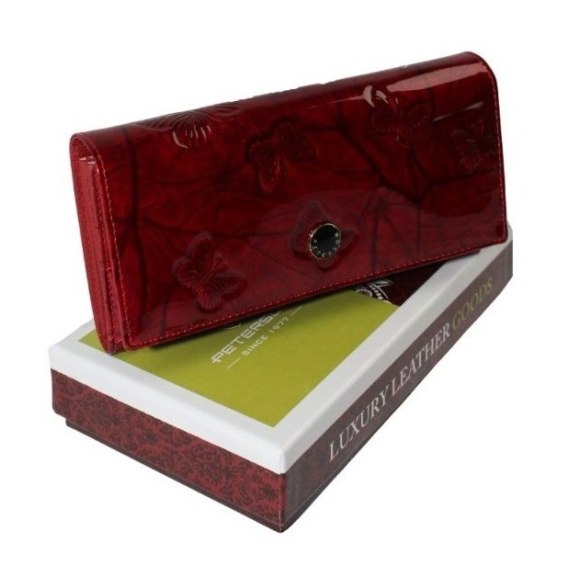Portfel Damski Skórzany Peterson Długi Suwak Wewnątrz Skóra Naturalna Lakierowana PTN 72037 CZERWONY 18,5 x 9 x 3,5 [cm]