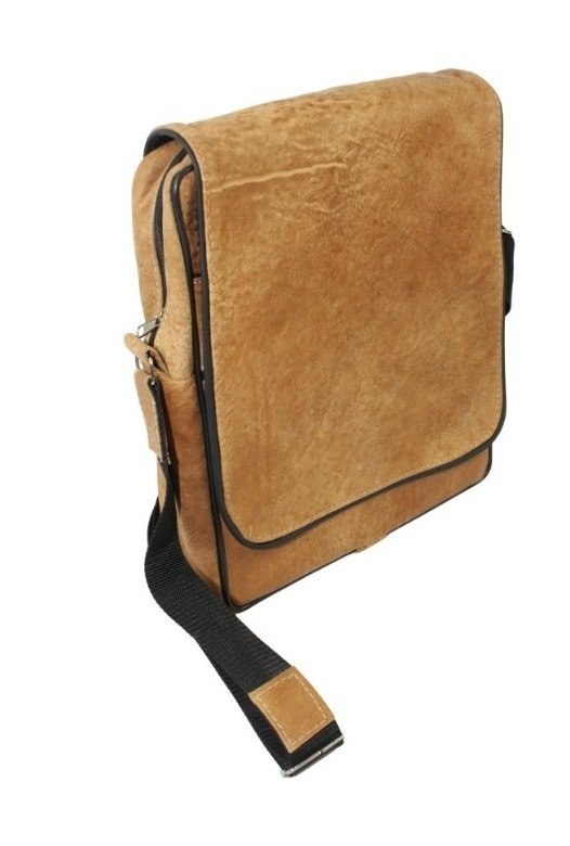 Skórzana Torba Na Ramię Pionowa GRETOS (PL) Listonoszka Z Klapką SUROWA SKÓRA KARMELOWY 37 x 30 x 7 [cm]