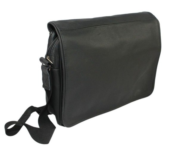 Skórzana Torba Na Ramię Pozioma GRETOS (PL) Listonoszka Z Klapką CZARNA 37 x 30 x 9 [cm]