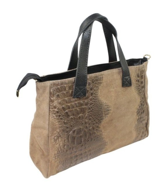 • Torebka Skórzana LUKA CROCO Skóra Naturalna KAWA Z MLEKIEM 26-034 38 x 26 x 12 [cm]