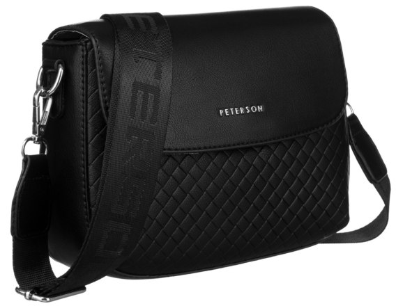 Torebka Z Ekologicznej Skóry Włoskiej Peterson PTN 6455 CZARNA Z Klapką 22 x 17 x 8 [cm]
